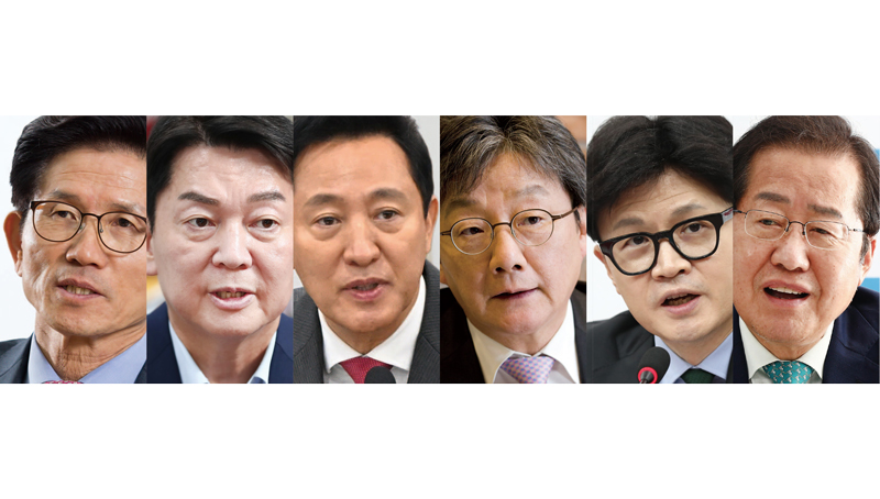 현재권력 윤석열 대통령의 구속으로 조기 대선은 한층 가시화됐지만 판세는 여전히 안갯속을 걷고 있다. 대결의 한 축을 차지하는 더불어민주당의 경우 사법적 변수가 없는 한 사실상 이재명 대표로 후보가 고정된 상태다. 반면 그 대척점에 설 국민의힘은 일찍이 주자들이 난립해 본선 못지않은 치열한 경선을 예고하고 있다. 한 지붕 아래 있지만 이들의 정치 성향과 방향성, 그간 걸어온 정치 궤적은 어느 때보다 다양하다. 정국의 분기점이 된 12·3 비상계엄 사태부터 윤 대통령의 구속 및 탄핵 정국을 바라보는 시각도 각기 다르다. 자연히 이들이
