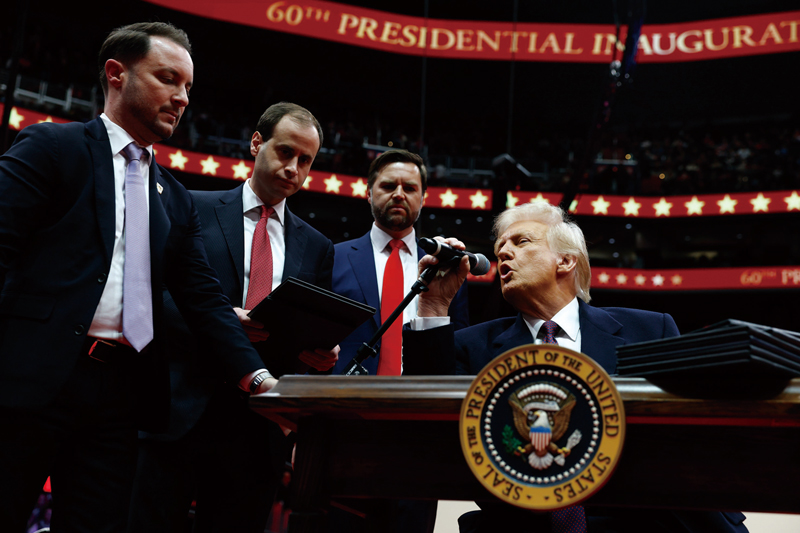 ‘미국 우선주의’를 앞세우고 4년 만에 다시 돌아온 트럼프 대통령의 취임 첫날은 충격과 공포, 파격과 논란의 연속이었다. 역대 대통령과 달리 성경에 손을 올리지 않은 취임선서부터 시작해 지지자들 앞에서 무더기로 행정명령에 서명하고, 펜을 던져주는 퍼포먼스까지 ‘트럼프다운’ 파격적인 기질을 유감없이 발휘했다. 내용도 뒤지지 않았다. 취임사, 46개 행정명령, 기자회견 등을 통해 그간 줄곧 공언해온 조치를 구체화하고 실행에 착수했다. 파리기후협약·세계보건기구(WHO) 동시 탈퇴, 파나마 운하 회수, 멕시코·미국 국경에 대한 비상사태 선