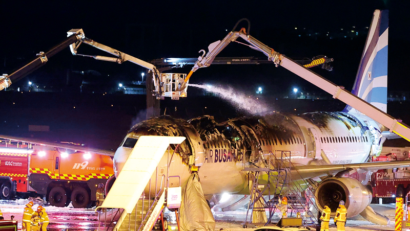 하마터면 무안국제공항의 제주항공 사고에 이은 또 하나의 대형 참사가 일어날 뻔했다. 1월28일 오후 10시25분쯤 김해국제공항 계류장에서 홍콩행 에어부산 항공기 BX391편이 이륙을 준비하고 있었다. 이때 여객기 수화물 선반에서 연기가 나더니 불꽃이 피어오르기 시작했다. 승무원이 긴급하게 기내용 소화기를 들고 선반 쪽으로 향했지만 불길이 빠르게 확산됐다. 기내에 연기가 차면서 시야 확보가 어려웠고, 불은 항공유가 저장된 날개 부분으로 확산되고 있었다. 승무원은 소화기를 사용하는 대신 승객들 대피가 급하다고 판단하고 탑승객들을 탈출시