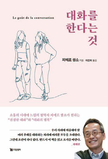 “대화와 관련해 내가 탄복한 점은 그 사용이 특별한 계획에 지배받지 않고 정해진 생각에 복종하지 않는다는 것이다. 그럼에도 의미를 만들고 일관성 있게 보인다는 사실이다. 마치 한 명의 수석 건축가나 군주에 의해 계획되지 않았지만 도로들과 마을들이 잘 어우러진 도시, 사람들이 흩어지게 내버려 두지 않아서 거친 반대에 맞설 필요도 없는 도시를 보는 것 같다.”생전 ‘느림의 철학자’로 불렸던 피에르 쌍소가 느림의 한 영역으로 ‘대화’를 선택하고 펴낸 《대화를 한다는 것》에서 한 말이다. 질 좋은 대화를 하는 것은 섬세하고 유쾌하고 즐겁게