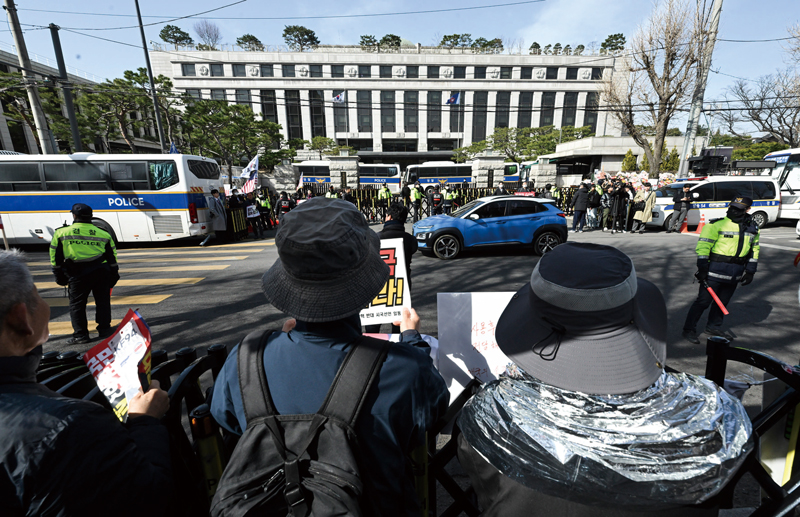 12·3 비상계엄은 대통령의 고유권한이었나, 국헌문란 목적의 폭동이었나. 윤석열 대통령의 파면 여부를 결정할 ‘헌법 나침반’이 종착지 앞에서 방향을 설정하지 못하고 있다. 현직 대통령을 내란 우두머리 혐의로 체포·구속·기소한 수사기관의 절차적 정당성에 법원이 제동을 걸면서 막판까지 ‘변수와의 싸움’이 불가피하게 됐다. 구속 취소를 이끌어낸 윤 대통령이 탄핵 찬성과 반대 진영 모두의 목소리를 키우는 기폭제가 되면서 헌법재판소의 숙고가 더 길어질 수 있다는 전망이 나온다. 헌재의 시간표가 ‘3월 중순’에서 ‘3월말’로 옮겨갈 것이란 분