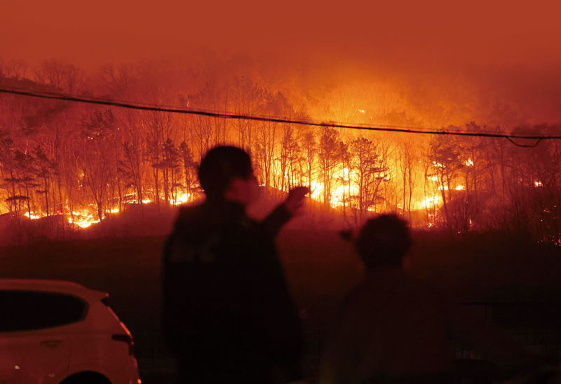 “바람이 이렇게 원망스러운 건 처음이다.” 좀처럼 불길이 잡히지 않는 경북 의성군 산불 진화에 동원된 한 소방관의 하소연이다. 3월21일 경남 산청군에서 발생한 산불은 강풍을 타고 경북 의성과 울산 울주 등으로 번지며 3월27일 기준 아직도 잡히지 않고 있다. 벌써 일주일째 산불이 이어지며 국민은 충격에 빠졌다.이로 인한 피해 또한 엄청나다. 의성·울주·김해·안동·청송·옥천·영양·영덕 등 지역의 산불 피해 면적은 3월27일 오전 기준 약 3만6000ha로 늘었고, 26명이 사망하는 인명 피해도 발생했다. 이번 피해 규모는 역대 최악