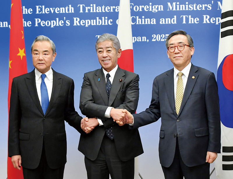 3월21일 왕이 중국공산당 중앙외사판공실 주임 겸 외교부장이 일본을 방문했다. 다음 날 열리는 한·중·일 외교장관 회의에 참석하기 위해서였다. 왕 주임이 일본을 방문한 것은 2020년 11월 이후 5년 만이다. 2박3일 동안 왕 주임은 바쁜 일정을 소화했다. 1년4개월 만에 열린 3국 외교장관 회의뿐만 아니라 제6차 중·일 경제 고위급 대화를 위해 15개 정부부처 책임자들까지 대동했기 때문이다. 왕 주임은 외교장관 회의에서는 일본을 향해 “올해가 종전 80주년”이라면서 “역사를 진지하게 돌아보고 직시해야 한다”고 일갈했다.그러나 왕