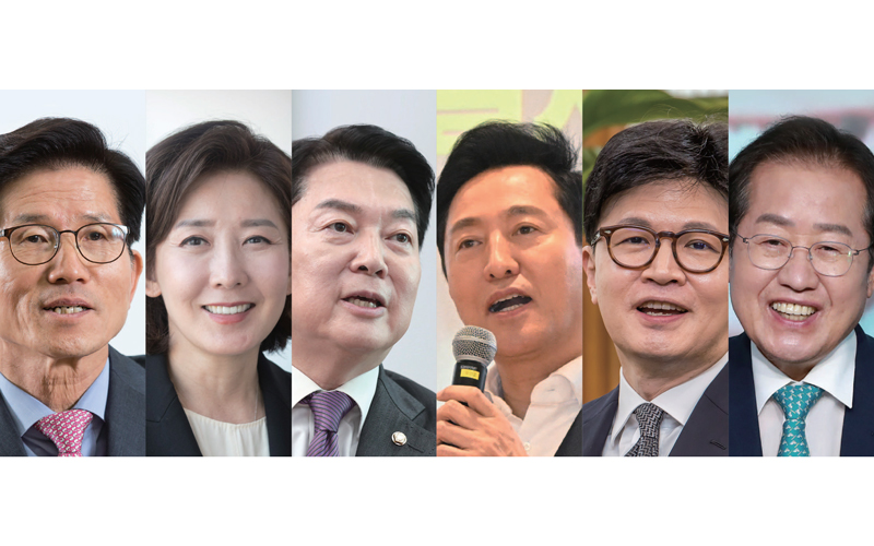 조기 대선이 6월3일로 확정되면서 차기 대권을 노리는 잠룡들의 움직임도 빨라지고 있다. 특히 국민의힘에선 출마 러시가 벌어지고 있다.안철수 의원과 이정현 전 의원이 4월8일 가장 먼저 출사표를 던졌다. 9일에는 김문수 전 고용노동부 장관·이철우 경북지사·유정복 인천시장이, 10일에는 한동훈 전 국민의힘 대표가 대선 출마를 선언했다. 오세훈 서울시장은 13일, 홍준표 대구시장은 14일 대선 레이스에 뛰어든다.더불어민주당에선 김두관 전 의원이 4월7일 당내에서 맨 처음 대선 출마를 선언했다. 9일에는 김동연 경기지사가, 10일에는 대표