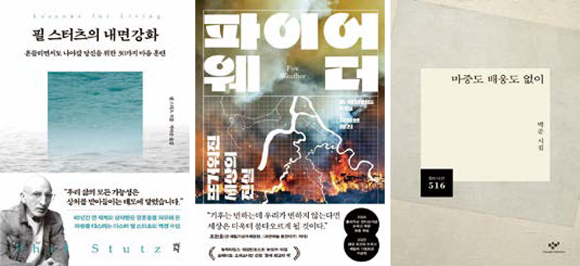 필 스터츠의 내면강화흔들리면서도 나아갈 당신을 위한 30가지 마음 훈련. 40년간 교도소 수감자부터 상위 0.01%까지 무수한 내담자를 만난 저자는 삶에 역경은 존재하지만, 태도에 따라 삶을 정체시킬 수도, 더 확장하고 나아가게 할 수도 있음을 깨달았다. 핵심은 오늘의 행동. 내가 나아가고 싶은 방향으로 움직일 때 자연히 지혜와 내면의 힘이 뒤따른다.필 스터츠 지음|다산초당 펴냄|344쪽|1만8500원 파이어 웨더뜨거워진 세상의 진실을 다룬 2023년 영국 논픽션 분야에서 최고의 권위를 인정받는 베일리 기포드상 수상작. 2016년