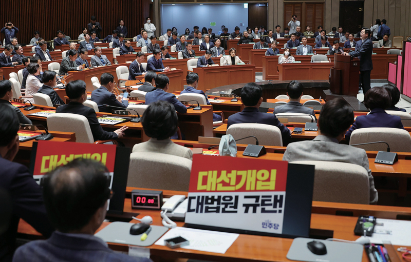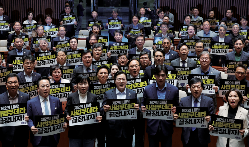 “훌륭한 정치인 조봉암도 사법살인, 이번엔 반드시 살아남겠다.” (이재명 더불어민주당 대선후보, 5월6일 충북 유세 중)“조희대의 사법 쿠데타는 이재명을 제거하려는 사법살인 시도다.” (박찬대 민주당 원내대표, 5월7일 중앙선대위 회의에서)“국민들은 대통령도 2명씩이나 탄핵시켰다. 대법원장이 뭐라고.” (정청래 민주당 의원, 5월5일 김어준 유튜브 출연해)‘사법 쿠데타’에 대한 마땅한 응징일까, 이재명을 지키기 위한 ‘사법 유린’일까. 5월1일, 대법원이 이재명 후보의 공직선거법 위반 상고심에서 유죄 취지의 파기환송 결정을 내리자