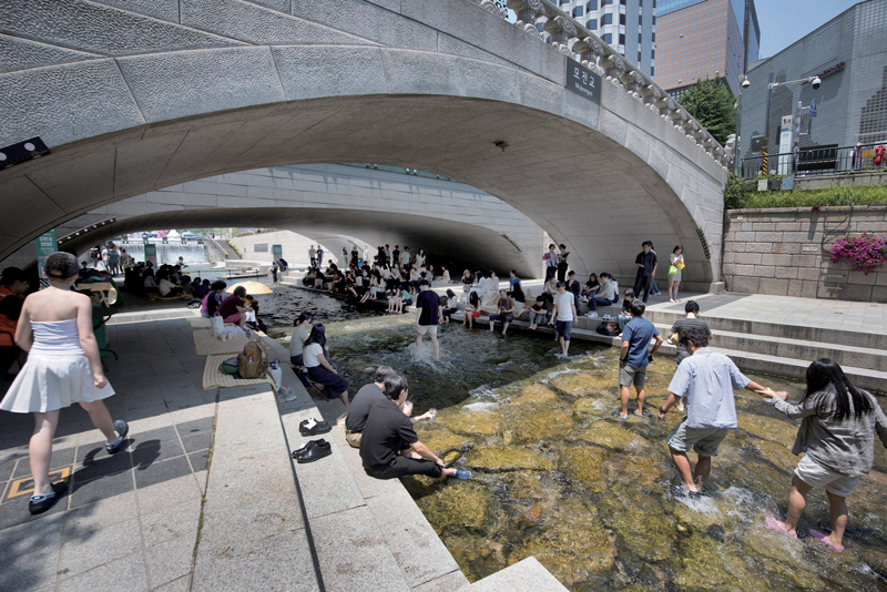 폭우와 폭염이 교차하는 극단적 여름이 시작됐다. 6월19일 서울의 낮 최고기온이 34도까지 오르는 등 ‘찜통 더위’가 계속되고 있다. 장맛비에도 무더위가 지속되면서 체감온도도 최고 33도까지 올라갔다. 여름이 뿜어내는 열기에 지친 시민들은 서울 청계천에서 진행된 ‘물 첨벙첨벙 축제’에 참가해 발을 물속에 담그며 더위를 식혔다.서울 광화문광장 터널분수를 찾은 시민과 외국인들은 시원한 물줄기 속에서 물놀이를 즐겼다.올해 폭염은 평년보다 더 덥고, 더 길 것으로 예상된다. 각 지방자치단체가 폭염과 수해를 피하기 위한 대책을 10월까지 추