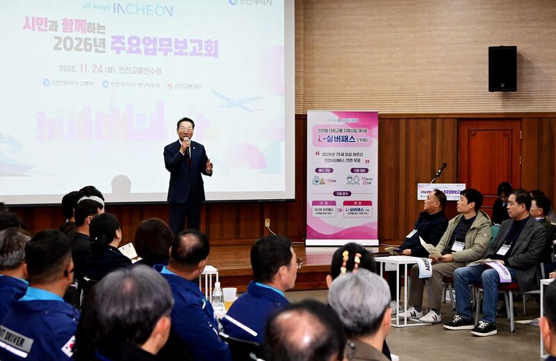 인천시가 교통·해양·항공 전 분야를 아우르는 청사진을 발표했다.시는 24일 교통·해양·항공 분야에 대한 ‘2026년 시민과 함께하는 주요업무보고회’를 개최했다. 주요 내용은 △시민이 체감하는 대중교통비 지원정책 △글로벌 교통도시를 위한 철도·도로망 확충 계획 △원도심 주차난 해소와 교통환경 개선을 위한 실행전략 △섬 주민 정주지원과 관광 활성화 방안 △해사전문법원 유치와 해양주권 성장동력 인프라 구축 △국방벤처센터 설립 △도심항공교통(UAM) 체계 구축과 미래 항공·방위산업 육성 방안 등이다.시는 대중교통비 지원정책을 대폭 강화한다