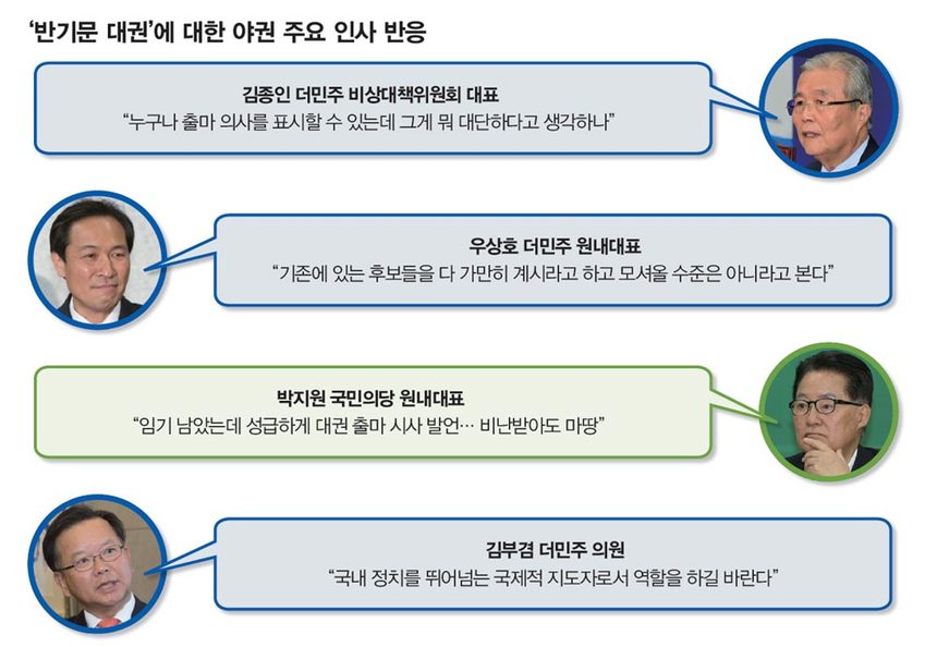야권, 반기문 출마 시사에 시큰둥…“潘 없어도 후보 충분”
