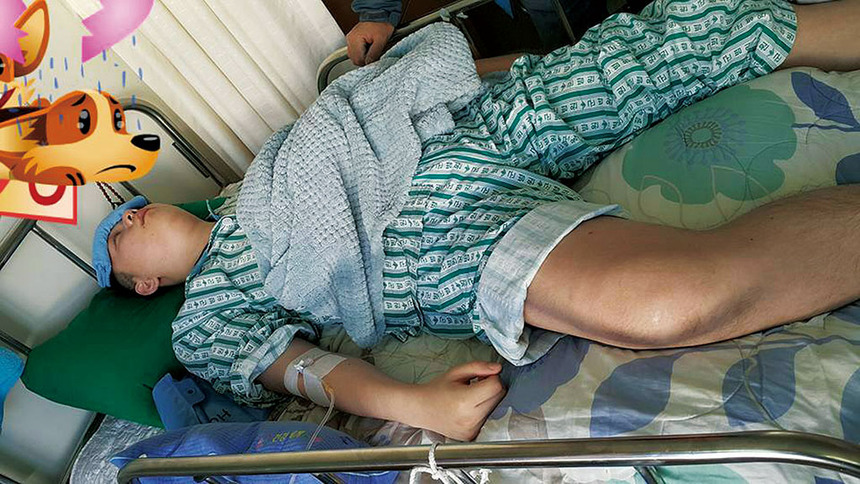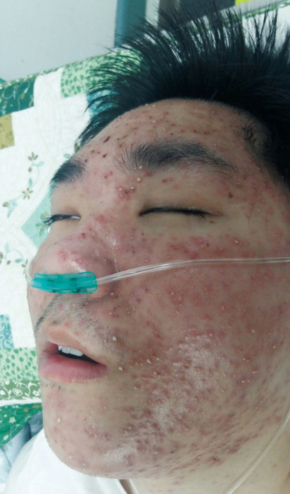 항생제 부작용으로 육진훤 상병의 얼굴과 목 등에 물집이 잡히고 염증이 생겨났다.