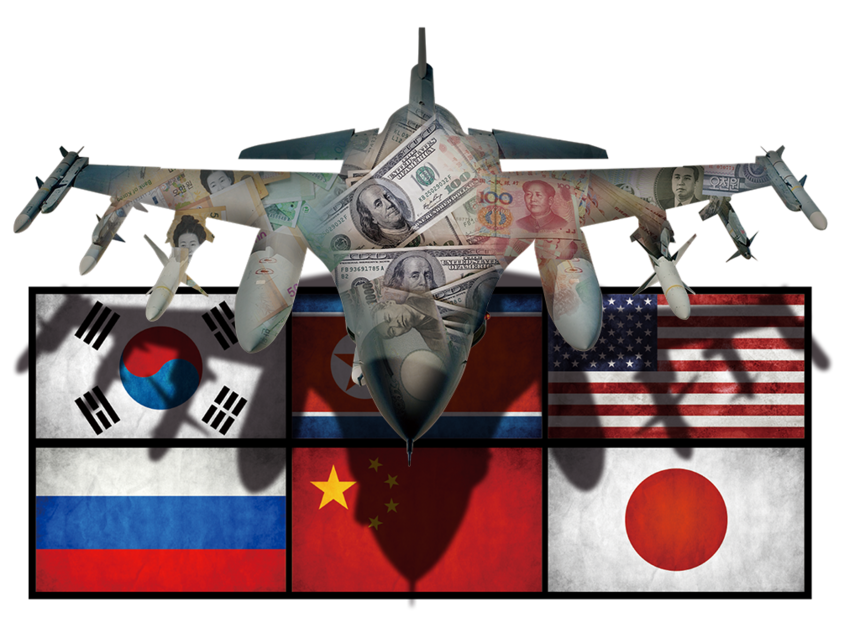 동북아에서는 전통적으로 중국과 일본, 러시아 등 지역기반을 가지고 있는 강대국들이 각축을 벌여왔다. 이런 가운데 미국이 6·25전쟁 이후 주한미군을 한국과 일본 등에 배치하며 동북아 정세에 개입해 왔다. 강대국 간 균형에 균열이 가기 시작한 것은 북한이 핵개발에 사활을 걸면서부터다. 여기에 급속한 경제성장을 이룬 중국이 G2 반열에 올라 미국과 어깨를 나란히 하면서 군비경쟁에 뛰어들었다. 중국은 미국에 대항하겠다며 스텔스 전투기와 항공모함, 최근에는 스텔스 폭격기까지 준비하고 있다. 북한이 불을 붙이고 중국이 기름을 붓는 형국이다. 이에 따라 우리나라는 물론이고 전통의 우방인 미국과 일본 역시 군비경쟁에 박차를 가하고 있다. 과연 2017년 동북아 6강 국가들의 군비경쟁은 어디쯤 와 있을까.