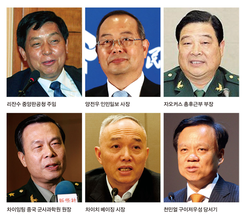 중앙서기처 총서기는 시 주석의 비서실장인 리잔수(栗戰書) 중앙판공청 주임이, 정협 주석은 시 주석의 책사인 왕후닝(王滬寧) 중앙정책연구실 주임이, 중앙기율위 서기는 후춘화(胡春華) 광둥(廣東)성 당서기가 될 전망이다. 이럴 경우 장 위원장과 위정성 주석, 장가오리(張高麗) 상무위원 등 장쩌민(江澤民) 전 국가주석의 측근이 권력 정상에서 모두 사라지게 된다. 시 주석은 이에 그치지 않고 장 전 주석의 권력기반이었던 상하이방(上海幇)을 퇴출시키고 있다. 2016년 숙청된 왕민 전 당서기는 장 전 주석의 처조카였다.