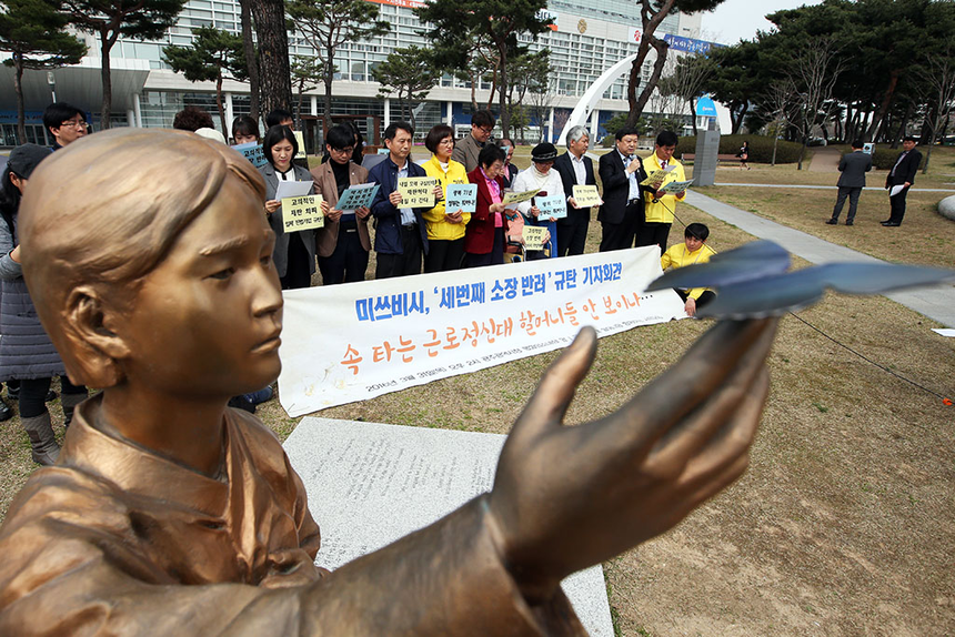 이들은 또 “미쓰비시 중공업이 중국인 피해자와 유족 3765명에게 1인당 10만 위안을 지급하는 안을 제기하는 등 보상 문제에 적극적으로 나섰다”며 “한국인 피해자들에게는 거듭된 법원 판결에도 불복하는 태도를 보인 것은 한국인을 무시하는 처사”라고 지적했다.