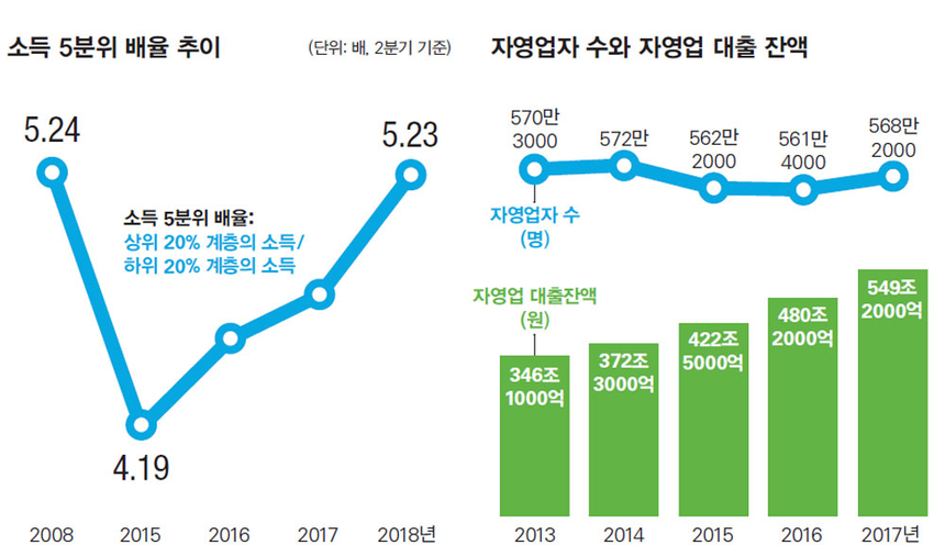 2018년 한국은 ‘자영업 공화국’이다. 너도나도 편의점과 치킨집을 차린다. 이미 포화상태지만 다른 대안이 없어 다들 어쩔 수 없이 퇴직금을 털어 ‘사장님’이 된다. ‘평생 직장’은 이미 옛말이 된 지 오래다. 한때 자영업은 우리 경제의 완충지대 노릇을 톡톡히 했다. 자영업은 임금 노동자가 은퇴 후 다시 한번 경제활동을 할 수 있는 주요한 기회였다. 하지만 이 완충지대는 이미 ‘레드오션’이 된 지 오래다. 구조조정과 정리해고에 떠밀려 자영업에 뛰어든 생계형 자영업자들은 빚만 떠안은 채 속속 문을 닫고 있다.