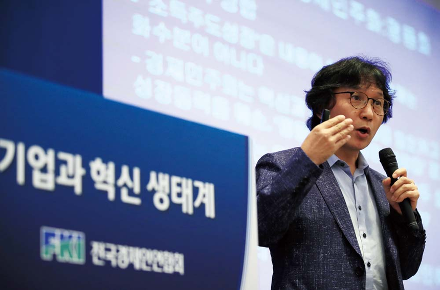“경제민주화와 혁신 사이에는 부정합(不整合)이 있다. 경영을 민주화하면 위험을 부담하는 적극적인 투자가 잘 되지 않는다. 혁신은 불확실성에 투자하는 것, 즉 확률이 낮은 곳에 투자하는 것이다. 성공 확률이 낮은 일의 투자 결정을 민주적으로, 즉 다수결에 부치면 투자가 이뤄지지 않는다. 그러니 지도력이 필요하다. 권위를 가진 사람들이 책임지고 나서야 한다. 기업은 기본적으로 떼돈을 버는 게 목적이다. 지금처럼 정부가 기업 결정 구조에 개입하려 하고, ‘너희 떼돈 벌면 나쁜 거야’ 하면서 뺏어가면 누가 나서겠나.
