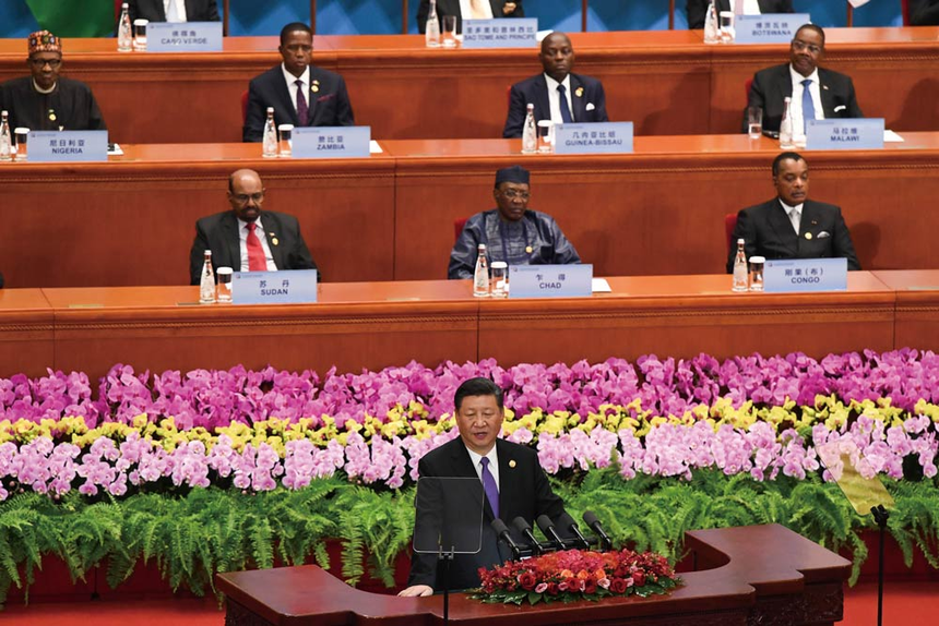 #2. 9월3일 같은 장소에서 아프리카 전체 54개국 중 53개국 정상이 모였다. ‘중국-아프리카 협력포럼 정상회의’ 개막식에 참석하기 위해서였다. 국영 CCTV가 생중계한 개막식에서 시 주석은 아프리카 ‘조공국’을 맞이하는 황제와 같았다. 시 주석은 연설에서 “중국은 아프리카와 운명공동체를 건설하길 원한다”며 “향후 아프리카 각국에 무상원조 150억 달러를 포함한 600억 달러 규모의 경제 지원을 하겠다”고 밝혔다. 시 주석은 “일대일로를 통한 협력만이 발전을 위한 상생의 길”이라고 역설했다.