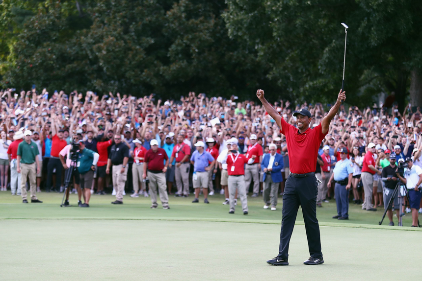 타이거 우즈는 9월24일(한국시각) 미국 조지아주 애틀랜타 이스트레이크골프클럽에서 열린 PGA투어 페덱스컵 플레이오프 최종전 투어 챔피언십에서 우승을 확정지었다. 우승이 확정되는 순간 그는 두 팔을 들어 올리며 포효했다. 그의 눈에는 만감이 교차했다. 황제라고 불렸지만 그가 정상의 자리에 선 것이 무려 1876일만이기 때문이다.