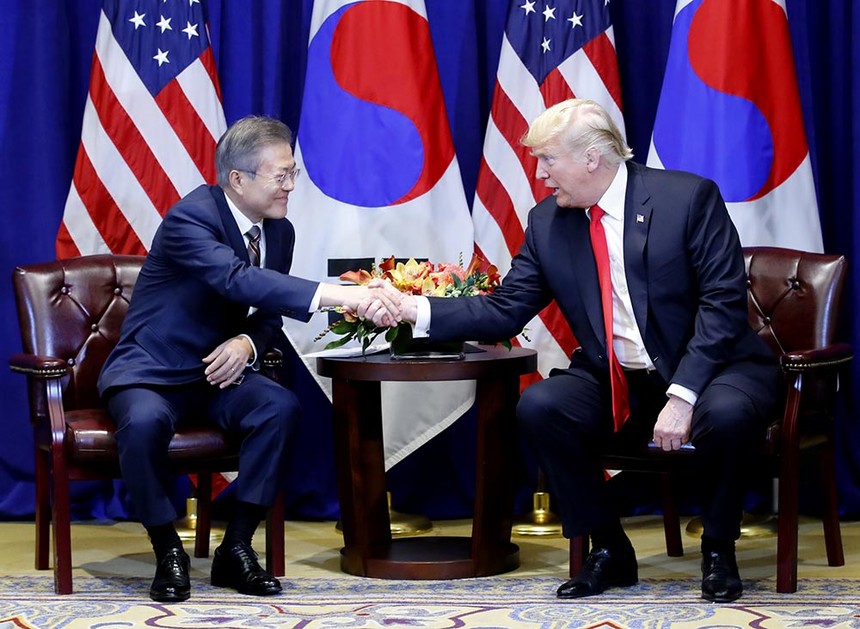 문재인 대통령과 도널드 트럼프 미국 대통령이 9월24일(현지시간) 미국 뉴욕에서 1시간 20여분 동안 회담을 갖고 북한의 비핵화 의지를 점검한 뒤 조만간 2차 북·미 정상회담을 개최할 것을 확인했다. 예정시간을 훌쩍 넘겨 진행된 정상회담에선 김정은 북한 국무위원장이 평양회담에서 문 대통령에게 전달한 비공개 메시지가 논의된 것으로 보인다.