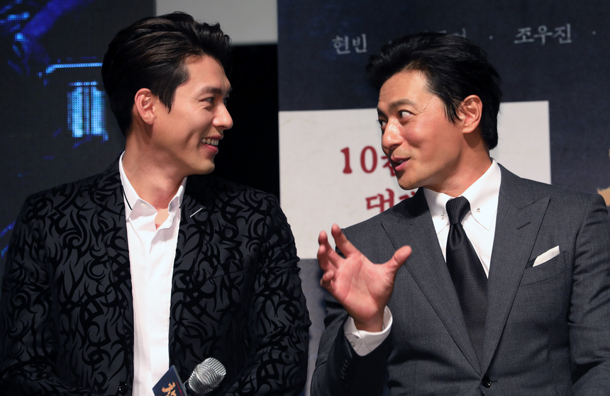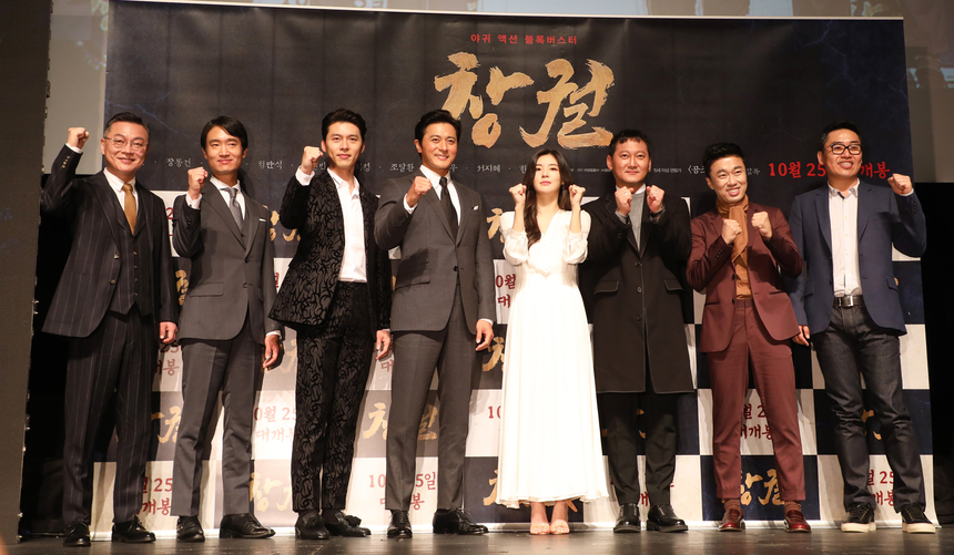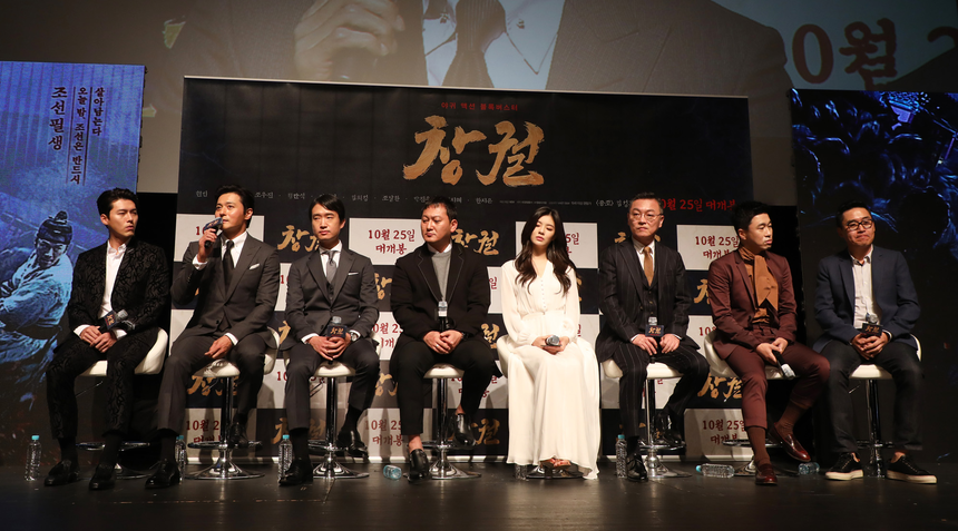 28일 오전 서울 강남구 신사동 압구정 CGV에서 김성훈 감독과 배우 현빈, 장동건, 조우진, 정만식, 이선빈, 김의성, 조달환이 영화 '창궐' 제작보고회에 참석해 기자간담회를 갖고 있다. 영화 '창궐'은 산 자도 죽은 자도 아닌 야귀가 창궐한 세상, 위기의 조선으로 돌아온 왕자 '이청(현빈)'과 조선을 집어삼키려는 절대악 '김자준(장동건)'의 혈투를 그린 작품이다. 10월 25일 개봉 예정이다.
