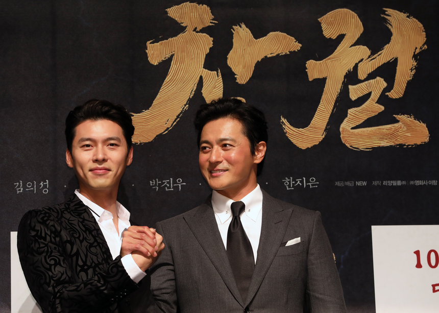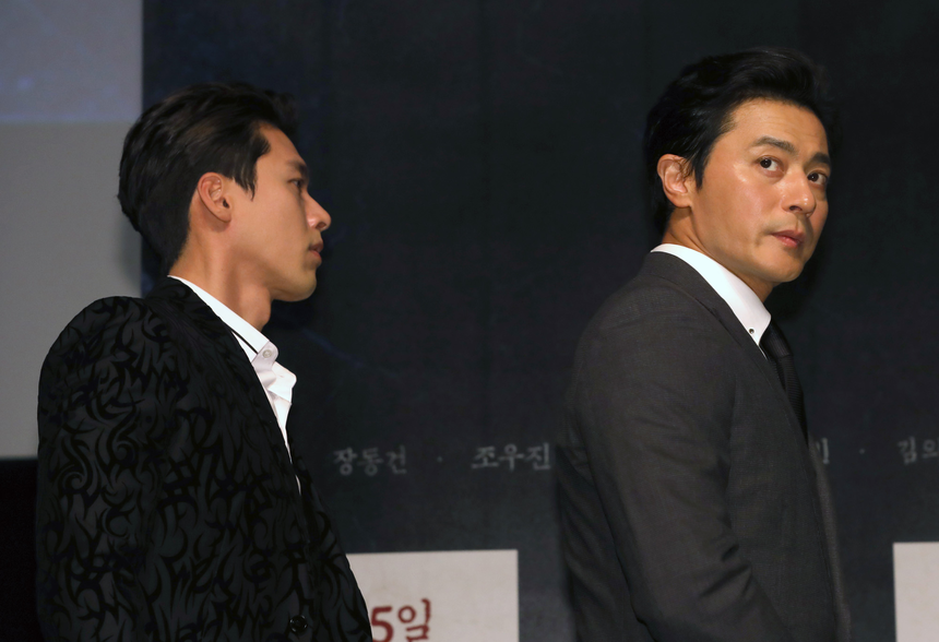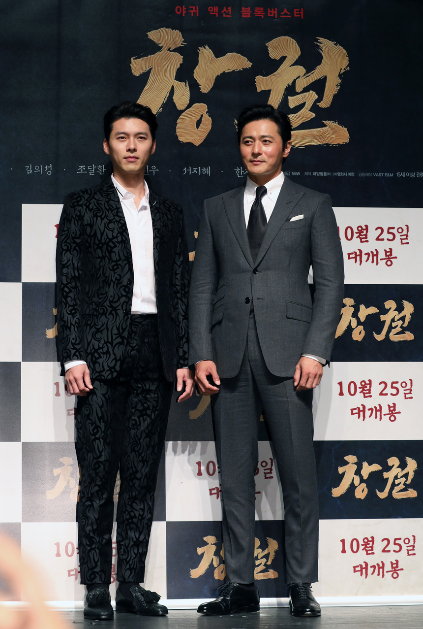 시선강탈 비주얼의 현빈과 장동건이 취재진 앞에서 포즈를 취하고 있다. ⓒ박정훈 기자