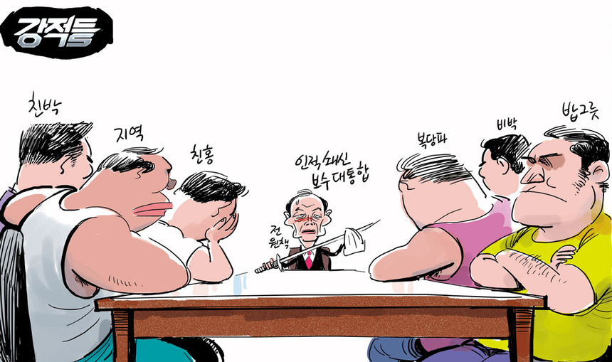 자유한국당 조직강화특별위회에 합류한 전원책 변호사가 인적쇄신과 보수대통합을 역설했다. 친박과 비박, 여기에 친홍과 복당파 등 여러 계파가 복잡하게 얽혀 있는 한국당의 당내 사정을 두고 전 변호사의 행보에 관심이 모아지고 있다. 그러나 당 안팎에서는 인적쇄신과 보수대통합의 성공 가능성에 대해서 반신반의하는 목소리가 많다. 언론 인터뷰서 소개된 전 변호사의 발언에 대해 당내 반발 기류도 나타난다.