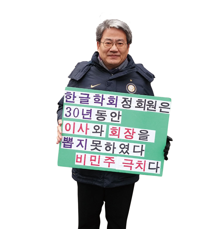 “기득권을 지키려는 지도부의 만행이 극에 달했다.”(한글학회 정회원)