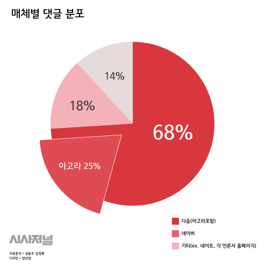 경찰 댓글은 다음과 아고라에 집중돼 있다. 다음의 경우 전체 댓글의 68%를 차지하고, 아고라 역시 25%로, 네이버(18%)를 제치고 2위를 차지했다. 네이버가 포털사이트 점유율 70% 상당을 차지하고 있지만, 경찰 댓글은 오히려 다음과 아고라에 집중된 것이다. 다음과 아고라는 상대적으로 진보 성향을 띄고 있다. 이와 관련해 특수단은 조 전 청장이 “(경기청장 시절에) 쌍용차 여론 대응팀을 정보기능에 만들어 아고라 좌파세력에 대응했다(2011년 2월23일 전국 홍보담당관 워크숍)”라는 말을 했다고 밝히고 있다. 조 전 청장이 진보 진영을 견제하기 위해 다음과 아고라에 집중적인 댓글 작성을 지시했다고 볼 수 있는 대목이다.