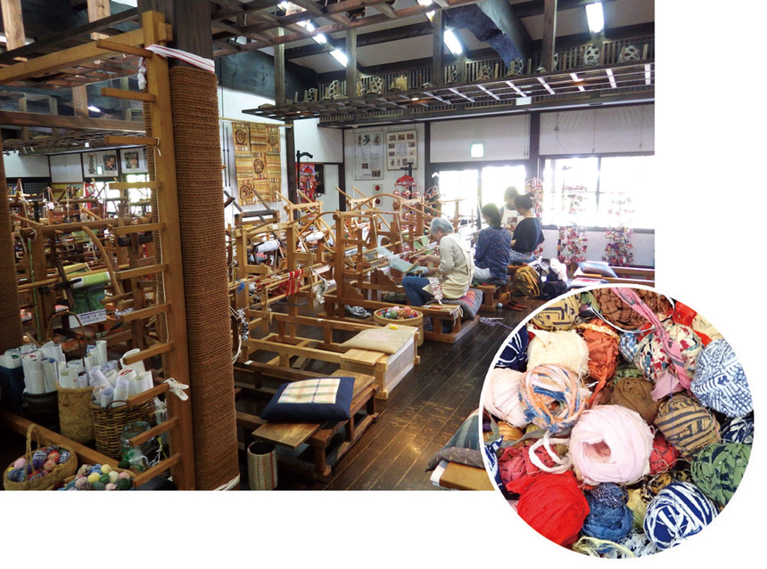 긴 시간 전통보존 활동을 해 오면서 지역의 초·중학생과 관광객을 대상으로 사키오리 체험을 담당했고, 작품을 지역 특산품으로 판매할 수 있는 수준으로 개발해 지역 활성화에 공헌한 점을 들어 수상 대상이 되었습니다. 제가 갔을 때 공방에는 60여 대의 베틀에 알록달록 날실이 장착되어 있었습니다. 이곳에 있는 베틀은 에도 시대에 사용했던 것에서부터 비교적 최근의 것까지 다양했습니다. 모두 민가에서 사용했던 것들을 한곳에 모아 공방에서 재사용하고 있답니다.