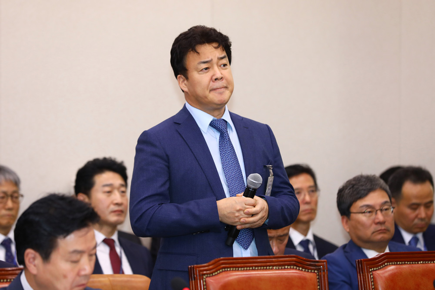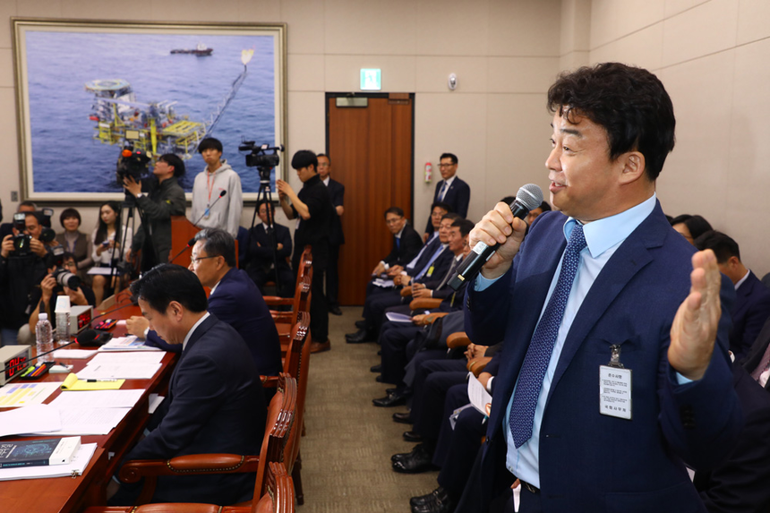 백종원 더본코리아 대표가 12일 국회에서 열린 중소벤처기업부 국정감사에서 외식업계의 문제점에 대한 질의에 답하고 있다. ⓒ 박은숙 기자
