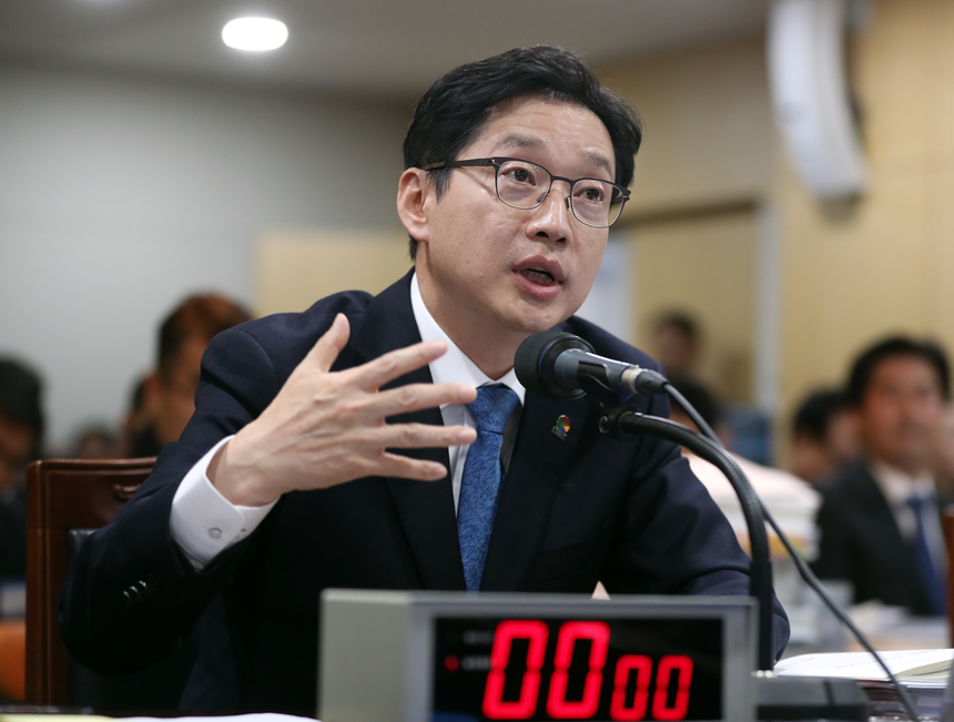 파행을 겪던 국감이 진행되자 김 지사는 조 의원의 질의에 대해 “그 내용의 사실 여부와 일방적 보도 내용이 잘못됐다는 입장을 수차에 걸쳐서 기자회견 등을 통해 밝혔다”며 “특히 경찰과 특검 조사 과정에서 충분히 소명했다”고 답했다.