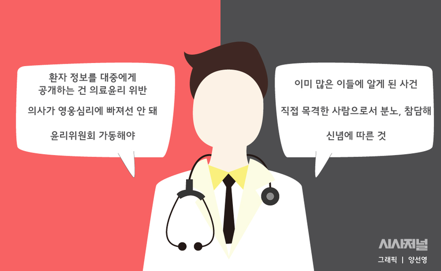그러나 의료계 생각은 조금 다른 것 같습니다. 해당 의사가 의료법을 위반했다며 반발하고 있기 때문입니다. 한 서울대병원 교수는 “환자의 정보를 대중에게 공개한 건 의료윤리에 반하는 것”이라고 강하게 말했습니다. 강희철 세브란스병원 가정의학과 교수 역시 “상당히 유감스러운 일”이라며 “윤리위원회가 가동될 것 같다”고 지적했습니다.