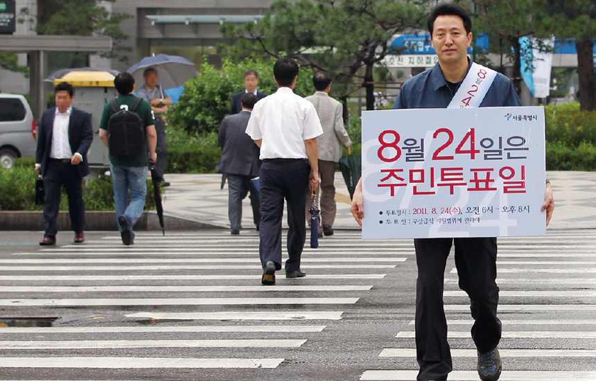 “그때 난 무상급식 한 가지로 투쟁한 건 아니었다. 당시 무상의료, 무상등록금 등 ‘무상 시리즈’를 민주당이 쏟아내던 때였다. 그래서 이대로는 안 된다, 뭔가 기준이 필요하다 생각했다. 무조건 반대가 아니라 소득 하위 70%까지 양보했다. 뭘 해도 좋으니 상위 30%까지 주면 감당이 안 된다고 주장했던 거다. 그때 주민투표가 제대로 이뤄지고 기준선이 정해졌다면 지금처럼 함부로 무상 정책 못 했을 거다. 기준선을 설정할 절호의 찬스를 그들이 나쁜 투표라고 하며 걷어찬 것이다.”