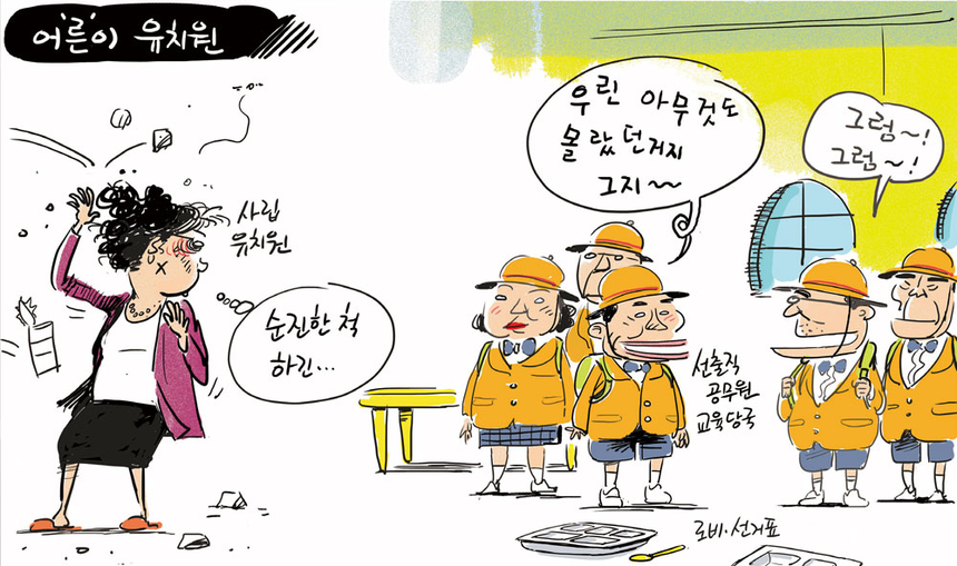페이스북(으)로 기사보내기 트위터(으)로 기사보내기 카카오톡(으)로 기사보내기 네이버밴드(으)로 기사보내기 다른 공유 찾기 이 기사를 공유합니다 페이스북(으)로 기사보내기 트위터(으)로 기사보내기 카카오톡(으)로 기사보내기 네이버밴드(으)로 기사보내기 닫기 · 사립유치원 사태가 또 다른 길로 치닫고 있다. 비리의 온상으로 몰렸던 한유총 측이 억울함을 호소하며 "유치원 폐쇄 불사"라는 강경 입장을 내비치자 교육부가 사태 수습에 나섰다. 일각에서는 사립유치원 측도 문제지만, 사태가 이렇게 될 때까지 뚜렷한 대책은 커녕, 사전 문제 인식조차 제대로 못한 각 시·도 교육청과 교육당국에 대한 비난의 목소리가 커지고 있다. 키워드 #사립유치원 #비리유치원 #국정감사 #박용진 이공명 화백 sisa@sisajournal.com 저작권자 © 시사저널 무단전재 및 재배포 금지 관련기사 [베트남 르포①] ‘넥스트 차이나’ 변화하는 기회의 땅(上) “한한령 풀려가는데”…‘사드 사태’ 재발할까 재계 노심초사 《어서와 한국은 처음이지?》 우리를 돌아보게 하다 [시끌시끌 SNS] ‘강변(강용석 변호사)’이 또… 탱탱하고 쫀득한 100% 국내산 여수 돌게장, 맛이 끝내주네 [단독] ‘평양판 김앤장’ 북한 로펌 실체 공개 이 기사에 댓글쓰기펼치기 개의 댓글 회원로그인 작성자 비밀번호 댓글 내용입력 댓글 정렬 최신순 추천순 답글순 BEST댓글 BEST 댓글 답글과 추천수를 합산하여 자동으로 노출됩니다. 닫기 더보기 댓글삭제 삭제한 댓글은 다시 복구할 수 없습니다. 그래도 삭제하시겠습니까? 비밀번호 닫기 댓글수정 댓글 수정은 작성 후 1분내에만 가능합니다. 본문 / 400 비밀번호 닫기 내 댓글 모음 닫기 정치 대통령실 국회/정당 한반도 국방/외교 정치일반 행정 대선 총선 여론조사 경제 산업/재계 중기/벤처 금융 증권 부동산 글로벌경제 생활경제 경제 일반 Good Company Conference 사회 사건사고 교육 노동 언론 환경 인권/복지 식품/의료 인물 사회 일반 국제 생활 Health Book Culture IT/Science 연예 스포츠 네트워크 인천 충청 영남 호남 제주 경기 강원 OPINION 연재 포토 만평 포토뉴스 시사픽업 사이트맵 RSS 위로 모바일버전