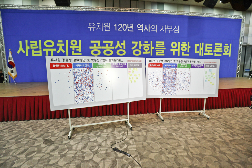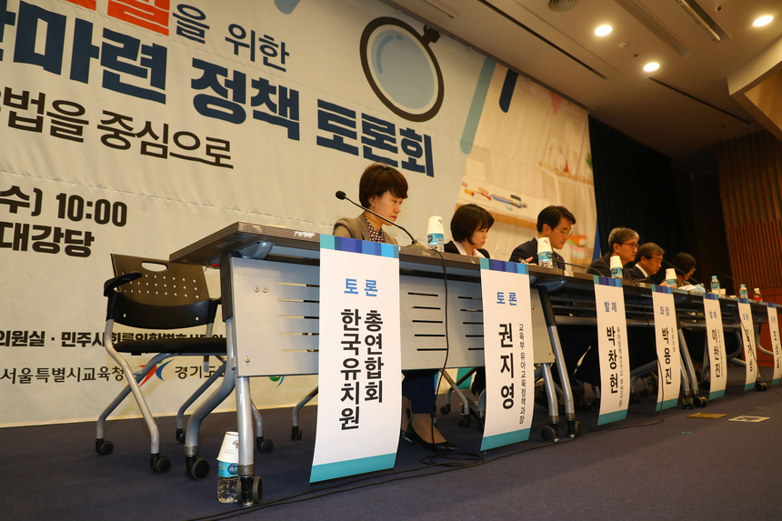 이날 토론회에선 재정건전성을 해치지 않는 선에서 사립유치원을 공적 영역으로 끌어들일 방법이 필요하다는 얘기도 나왔다. 김거성 전 경기도교육청 감사관은 “국공립 40% 달성하면 유아교육의 공공성이 저절로 완성되는 게 아니다”라며 “국공립의 세 배를 차지하고 있는 사립유치원의 인적․물적 토대를 포기할 순 없다”고 했다. 이와 관련해 김정호 전 교수는 “국공립 확대정책 대신 사립유치원 지원금을 늘려 완전무상 교육정책으로 가는 게 효율적”이라고 주장했다.