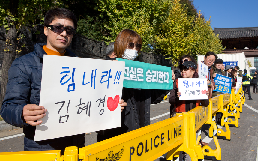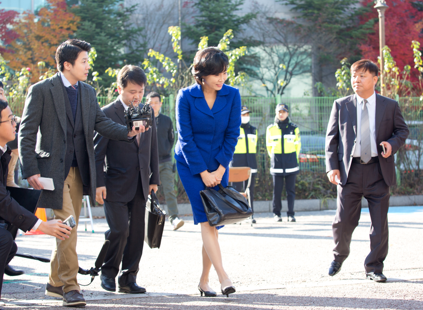 포토라인 앞에선 김혜경 씨. ⓒ박정훈 기자