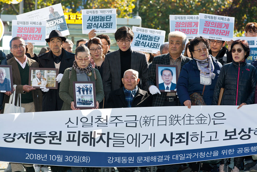 일본이 ‘한 방’ 먹었다. 강제징용 피해자들이 일본 전범 기업을 상대로 제기한 손해배상청구 소송에서 우리 대법원이 피해자 측의 손을 들어준 것이다. 10월30일 대법원 전원합의체는 전범 기업 신일철주금이 이춘식 할아버지(98)를 비롯한 강제징용 피해자 4명에게 1억원씩 배상하라는 원심판결을 확정했다. 2005년 소가 제기된 지 13년 만의 결론이다.