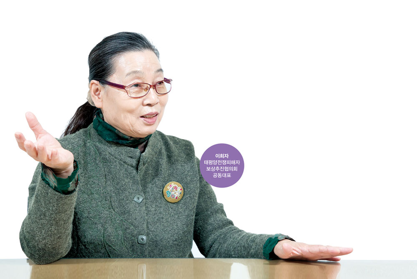 이희자 태평양전쟁피해자보상추진협의회 공동대표(이하 이): 판결 이후 일본 반응을 보면 기쁨을 누릴 새도 없이 화가 치밀어 오른다. 아주 괘씸하다. 한 나라의 대사를 불러다가 무슨 죄인 다루듯이 혼을 냈다. 아베 총리까지 나서서 비난을 퍼붓더라. 이춘식 할아버지도 굉장히 뿔이 났다. 너무 무리해서 몸살도 걸렸다.