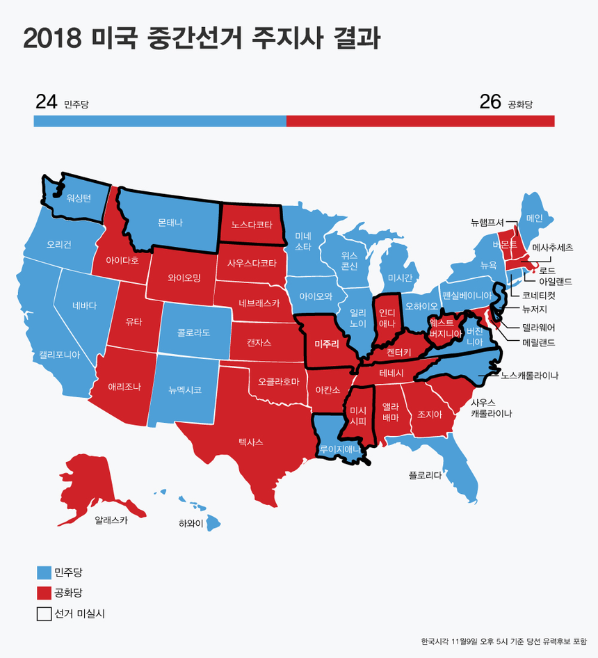 11월9일 오후 5시 기준 미국 중간선거 결과
