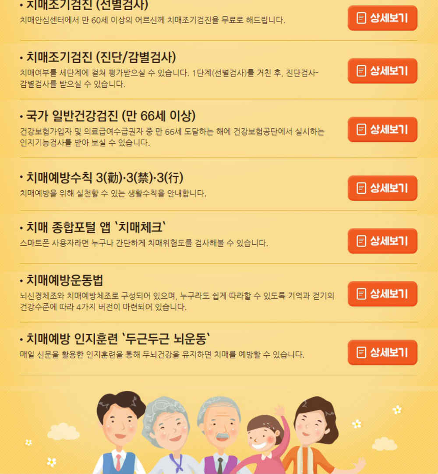 만일 치매 검사를 받고 싶다면, 집 근처 치매안심센터(ansim.nid.or.kr)를 찾으면 된다. 1995년 전국 256개 보건소에 설치한 치매상담신고센터가 2010년부터 치매안심센터로 변경돼 운영되고 있다.