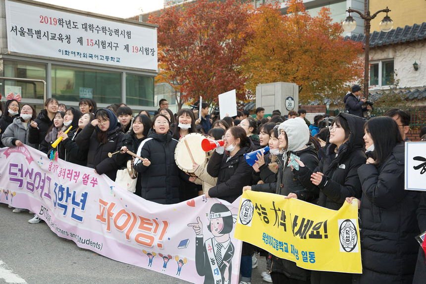 2019 대학수학능력시험(수능)이 11월15일 전국 1190개 시험장에서 일제히 실시됐다. 59만4924명이 지원한 이번 수능을 위해 관공서와 금융기관 등의 출근 시간이 1시간 늦춰졌고 시험장 200m 전방에는 대중교통을 제외한 차량 출입이 전면 금지됐다. 영어 듣기평가가 진행되는 오후 1시10분부터 1시35분까지는 항공기와 헬리콥터의 이착륙은 물론 군사훈련도 중지됐다. 시험장 밖에서는 학부모와 후배들의 응원전이 펼쳐지는 등 우리나라에서만 볼 수 있는 이색 풍경들이 올해도 어김없이 연출됐다. 대학 입시가 대한민국 사회에서 갖는 위상을 여실히 보여주는 장면이다.