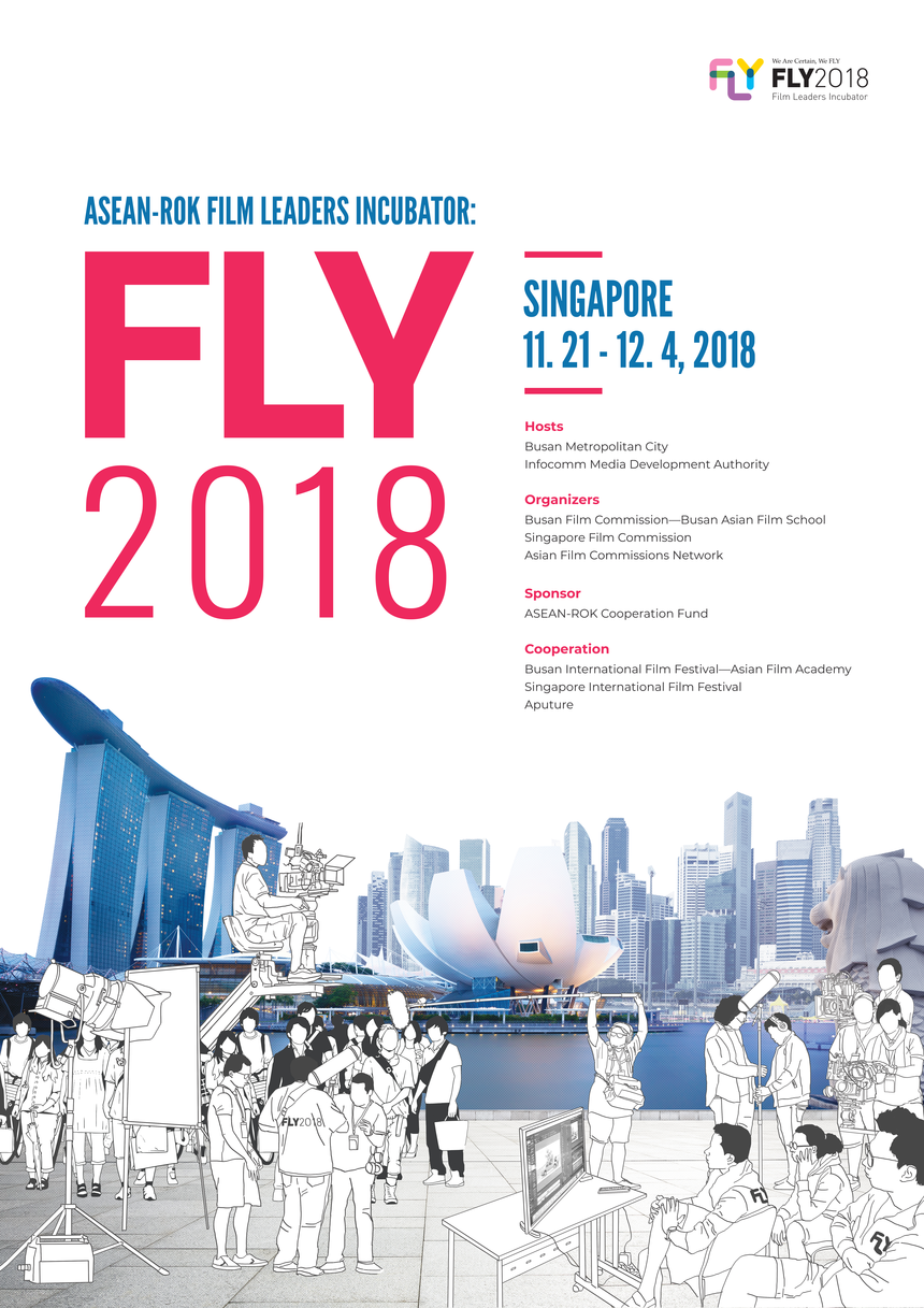 ◇ 부산시, 차세대 영화인재 육성 박차 한국-ASEAN 영화공동체 프로그램이 오는 11월 21일부터 12월 4일까지 싱가포르에서 개최된다.이번 행사는 부산영상위원회가 지난 2012년부터 1년 프로젝트 단위로 시행한 단편영화제작워크숍 한국-ASEAN 차세대영화인재육성사업(FLY)을 확장해 프로그램 기반의 2개년 사업으로 기획한 첫 번째 사업이다.올해 프로그램은 부산광역시와 싱가포르 정보통신미디어개발청이 주최하고, 부산시, 부산영상위원회 부산아시아영화학교, 싱가포르영상위원회, 아시아영상위원회네트워크가 주관해 영화제작 워크숍 설명회 형식으로 구성됐다.한국과 ASEAN 10개국에서 선발된 22명의 FLY2018 교육생들은 21일 입학식을 시작으로 현지에서 시나리오 각색, 로케이션 스카우팅, 캐스팅 오디션, 촬영, 후반작업 등 영화제작의 전 과정에 투입돼 단편영화 2편을 제작할 예정이다.이외에도 각 분야(연출, 촬영, 음악, 편집, 제작) 심화 강의, 연출·촬영 강사진 작품 시사 및 대화, 마스터클래스, 졸업시사, 졸업식 등의 일정을 소화한다. 연출 강사로는 한국 신동석 감독과 싱가포르 차이 이 웨이 감독이 선정됐다. 촬영 강사는 한국 엄혜정 감독과 싱가포르 데릭 루 촬영감독이 참여한다. 싱가포르를 대표하는 에릭 쿠 감독(Eric KHOO)도 마스터클래스 강사로 참여한다.