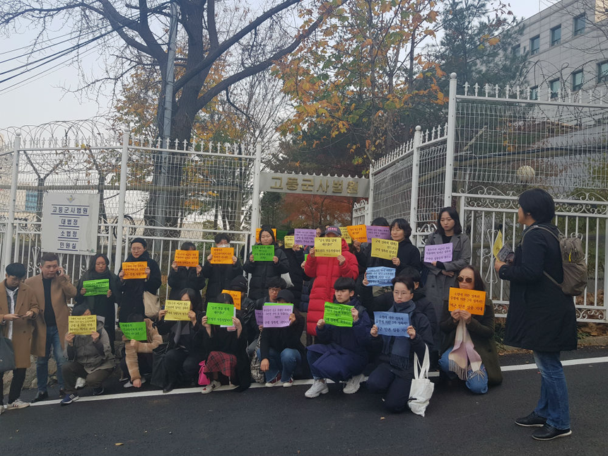 C대령에 이어 11월19일 B소령의 2심 선고 일정이 공개된 직후, 군인권센터와 한국성폭력상담소에서는 공판 단체 방청 신청을 받았다. 그리고 이날 80명 이상의 시민들이 ‘성소수자 여군인 점을 이용해 일어난 성폭력, 군대 내 성평등의 현주소’, ‘군대 성폭력 대책은 번드르르, 군대 성폭력 판결은 무죄?!’ 등이 적힌 피켓을 들고 방청석에 입장했다.