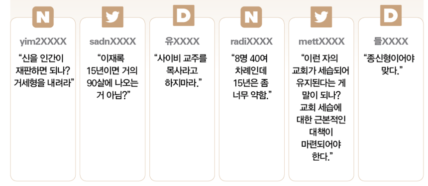 자신의 교회 여성신도 여러 명을 상습적으로 성폭행한 혐의로 재판에 넘겨진 이재록 만민중앙성결교회 목사가 1심에서 중형을 선고받았다. 서울중앙지법 형사합의26부는 11월22일 상습준강간 등 혐의로 기소된 이 목사에게 징역 15년을 선고했다. 재판부는 “피고인을 신적 존재로 여겨 복종하는 피해자들의 처지를 악용했다”며 “범행이 계획적이고 비정상적이어서 비난의 가능성이 크다”고 밝혔다.