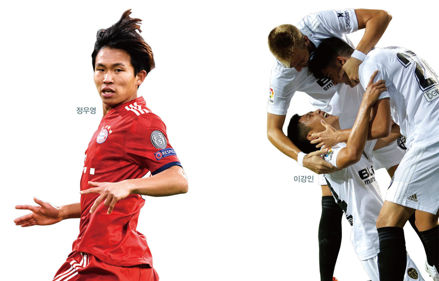 아직 대표팀에 선발되지 않았지만 유럽 무대를 달구는 두 명의 10대 한국인도 있다. 2001년생 이강인(발렌시아)과 1999년생 정우영(바이에른 뮌헨)이다. 소속팀의 기대를 한껏 받고 있는 두 유망주는 최근 차례로 프로 데뷔에 성공했다.