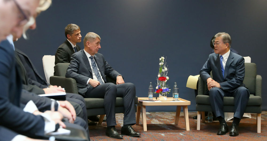 야당인 자유한국당은 체코 대통령이 부재중인 상황에서 문 대통령이 총리와 회담을 한 점, 외교부 공식 트위터 계정에서 '체코'를 '체코슬로바키아'로 잘못 올린 점 등을 들어 "비정상적 정상 외교"라고 비판했다. 정진석 한국당 의원은 "양국의 중요 현안인 원전 세일즈는 회담 의제가 아니라고 하고, 대통령이 관광지로 유명한 비투스 성당을 찾아가고 현지 기업인과의 만남을 취소하는 등 비정상적인 일들이 일어났다"며 "한마디로 국제 코미디"라고 주장했다. 이어 "우리나라 외교 역사상 해당 방문국 정상이 부재중인데 정상 외교 목적으로 방문한 사례가 있느냐"고 목소리를 높였다. 이태호 외교부 제2차관은 이에 대해 "체코 대통령이 참석 못 한 것은 해외 일정 때문이라며 깊은 양해를 구한 것으로 안다"면서 "트위터 오기는 실무자가 실수한 것으로, 30분 이내에 발견해 바로 조처를 했다. 실수에 대해 사과드린다"고 말했다.