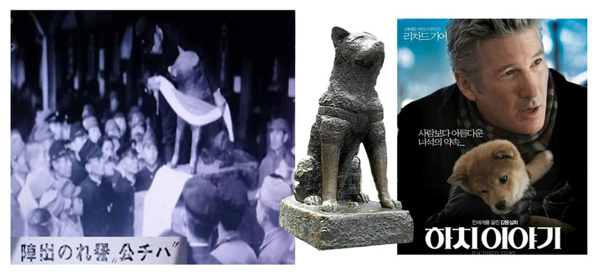 충견공은 도쿄 시부야 역에서 통근하는 주인을 따라 나선 '하치'라는 반려견이다. 주인이 갑자기 세상을 떠난 뒤에도 하치는 날마다 이곳에 나왔다고 한다. 주인을 기다리는 것이란 소문이 매스컴을 통해 확산됐고, 마침내 1934년 '살아있는' 충견을 기리는 동상이 세워졌다. 하치 이야기는 애국심 고취에 호재였다. 국민들에게 "개도 주인에게 저렇게 충성하는데 우리는 사람답게 조국에 충성하자"는 메시지를 각인시켰다. 하치 동상은 건립 10년 만인 1944년 10월 시민들의 애도 속에 해체식이 거행됐다. 주목되는 점은 이 행사 명칭이 '출진식(出陣式)'이었다는 사실이다. 동상이 무기로 만들어져서 전쟁터에 나간다는 뜻이니 일제는 반려견에도 군국주의 망령을 씌운 것이다.