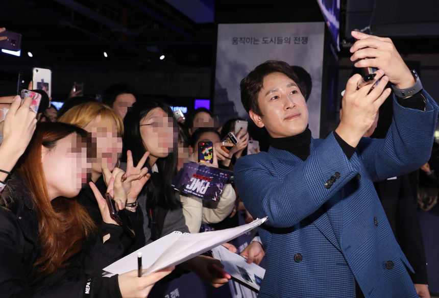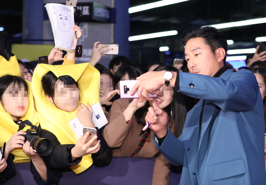 배우 하정우가 팬들과 셀카를 찍고 있다. ⓒ박정훈 기자