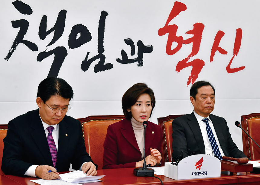 한국당이 12월15일 의결한 ‘국회의원 선거구 조직위원장 임명안’을 보면 친박계에선 최경환·홍문종·윤상현·김재원·곽상도·윤상직·정종섭 의원 등이, 비박계에선 김무성·홍문표·김용태·권성동·이은재 의원 등이 포함됐다. 이들은 기소 및 유죄 판결 전력, 국정농단과 20대 총선 패배 책임을 이유로 당협위원장에서 퇴출됐다. 교체 심사를 한 조직강화특별위원회가 ‘쇄신’과 ‘안정’ 사이에서 어정쩡한 타협책을 마련한 것으로 보인다.