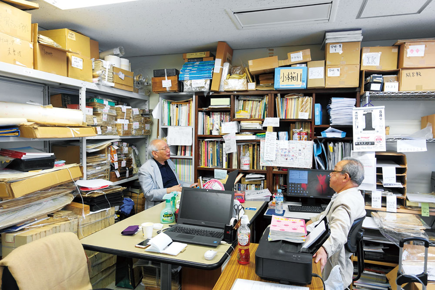 지난 11월 우리나라에서도 유명한 도쿄의 고서점가인 진보초에서도 굳이 신센도 점주를 만나기 위해 나섰습니다. 마침 오랜 지인인 금바라 하루오(金原春雄·79)씨가 점주와 고등학교와 대학 동기라며 만날 수 있도록 주선하고 동행해 줬습니다. 인터뷰를 마치고 안 사실이지만 두 사람은 50여 년 만에 만났다고 합니다. 심장수술로 산소호흡기를 휴대한 상태임에도 불구하고 서점까지 나와 만나준 데는 옛 친구와의 만남을 귀히 여기고 싶은 마음도 있었을 것 같습니다.