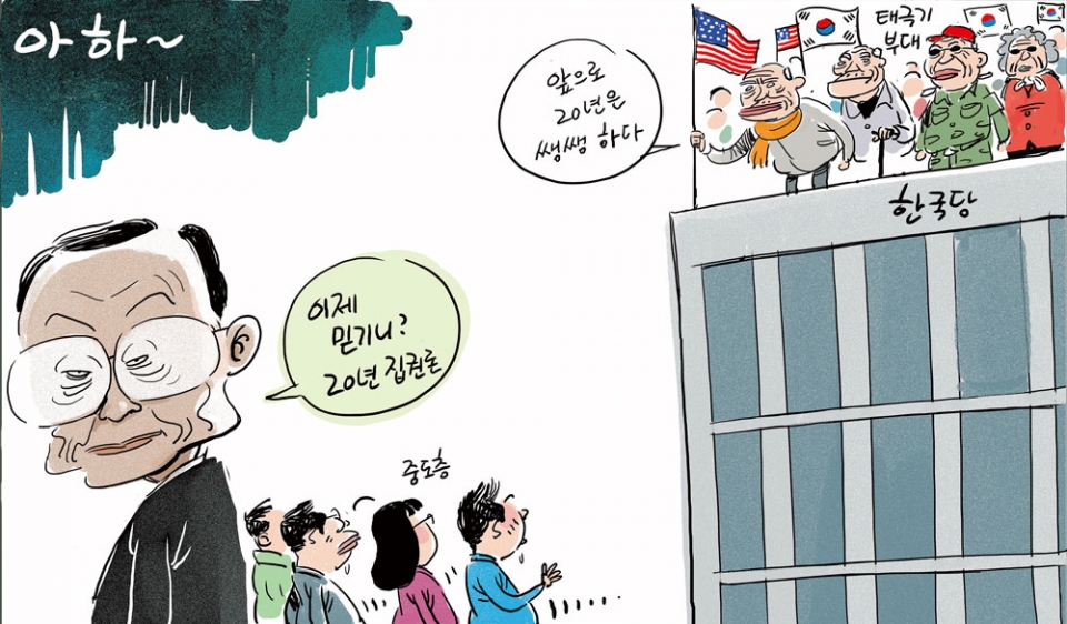 페이스북(으)로 기사보내기 트위터(으)로 기사보내기 카카오톡(으)로 기사보내기 네이버밴드(으)로 기사보내기 다른 공유 찾기 이 기사를 공유합니다 페이스북(으)로 기사보내기 트위터(으)로 기사보내기 카카오톡(으)로 기사보내기 네이버밴드(으)로 기사보내기 닫기 키워드 #시사TOON #이공명 #이해찬 #20년집권론 #태극기부대 이공명 화백 sisa@sisajournal.com 저작권자 © 시사저널 무단전재 및 재배포 금지 관련기사 [시사TOON] '대선' 방위 분담금 [시사TOON] 극한직업, 판사 [시사TOON] 손혜원, 이래도 해결 안 되면…? [시사TOON] ‘친박’ ‘비박’ 사라지고 ‘친황’ 등장? [시사TOON] 연동형 비례대표제, 어떻게… 주가 조작으로 개미들 간 빼먹은 ‘회장님’들 “아들은 중상인데 가해자가 없다니…” 장애인 父의 절규 BTS는 국민은행으로, 워너원은 신한은행으로 [르포] ‘몰카와의 전쟁’ 200일, 현실은 여전히 ‘몰카 공화국’ 패드를 든 아재들, ‘제2의 콘솔 전성시대’ 이끈다 '향수 + 비타민' 바디클렌저 하나로 해결 이 기사에 댓글쓰기펼치기 개의 댓글 회원로그인 작성자 비밀번호 댓글 내용입력 댓글 정렬 최신순 추천순 답글순 BEST댓글 BEST 댓글 답글과 추천수를 합산하여 자동으로 노출됩니다. 닫기 더보기 댓글삭제 삭제한 댓글은 다시 복구할 수 없습니다. 그래도 삭제하시겠습니까? 비밀번호 닫기 댓글수정 댓글 수정은 작성 후 1분내에만 가능합니다. 본문 / 400 비밀번호 닫기 내 댓글 모음 닫기